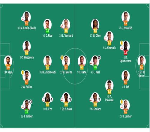 阿森纳首发:1-拉亚、12-廷伯(80’4-本·怀特)、2-萨利巴、3-莫斯克拉、49-斯凯利(68’33-卡拉菲奥里)、36-苏维门迪、41-赖斯、7-萨卡(68’11-马丁内利)、10-埃泽(80’8-厄德高)、19-特罗萨德(38’20-马杜埃凯)、23-梅里诺。