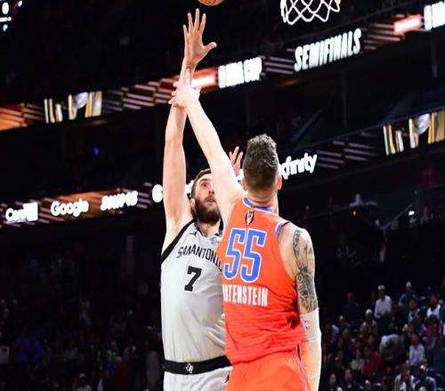 在此前的一场NBA杯西部决赛中,圣安东尼奥马刺经过苦战后以111比109险胜了主场作战的俄克拉荷马城雷霆,顺利挺进NBA杯决赛。接下来他们将会与战胜了奥兰多魔术的纽约尼克斯争夺NBA杯冠军,而雷霆则是遭遇淘汰。本场比赛后,拿下了3连胜的马刺的战绩提升到了18胜7负,排名也是攀升到了西部第4位;而结束了16连胜的雷霆的战绩则是下滑到了24胜2负,排名继续稳居西部榜首位置。