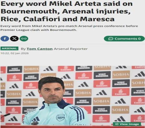 阿尔特塔出席了赛前新闻发布会,我们来看看阿森纳主帅的发言。
