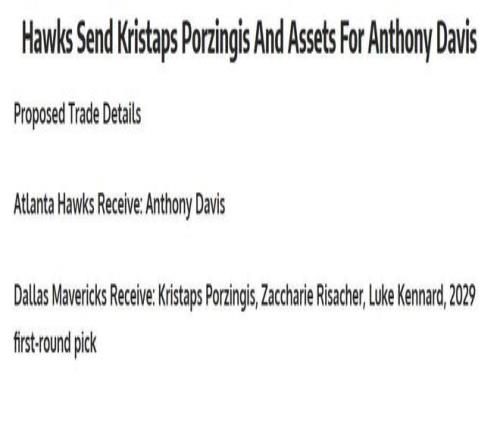 名记Shams在后续报道中指出,老鹰队之所以如此廉价卖掉特雷杨,提升薪金灵活性以在交易截止日前引进另外一名顶薪球员是重要原因之一,而浓眉哥是他们的头号目标。