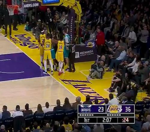 开场湖人三分球4中4一度领先黄蜂12分之多,黄蜂暂停后布里奇斯也连续命中三个三分球,黄蜂将分差缩小到5分。这场比赛科比-巴夫金登场了,他在南湾湖人场均26分,湖人刚给他一份10天短合同,可他登场就送了一个三分犯规,东契奇压哨三分命中。首节东契奇火力全开拿到19分2助攻,布里奇斯首节11分3篮板,两队首节战罢湖人39-30领先黄蜂。