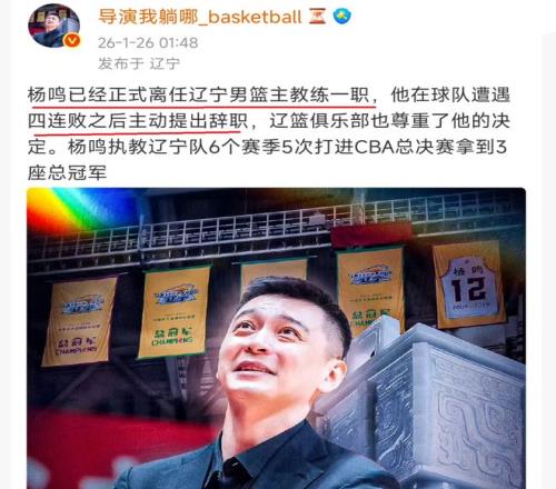 辽宁队如此输球,作为主教练的杨鸣,脸上也是挂不住,于是,杨鸣在赛后,也是忍无可忍,向球队管理层,直接提交了一份辞职报告,坚决要离开辽宁队。面对杨鸣的这种做法,辽宁队方面,也是想要进行挽留,毕竟,杨鸣曾给辽宁队带来了无尽的快乐,带来了3个CBA总冠军。