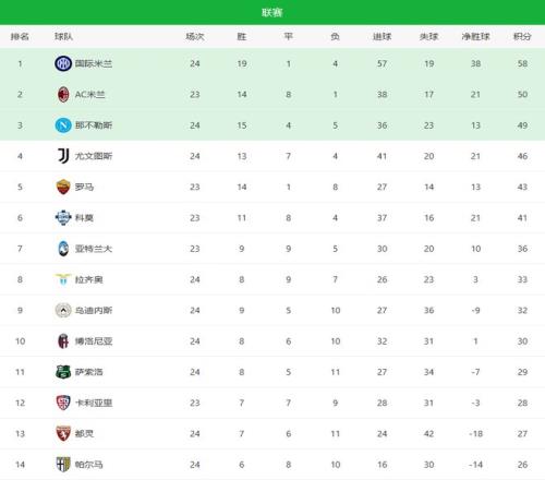 意甲24轮继续开打,领头羊国际米兰客场5-0横扫升班马萨索洛,铁卫迪马尔科上演助攻帽子戏法创纪录,不仅继续领跑积分榜,射手榜第一人是劳塔罗,助攻榜则是迪马尔科,这样的蓝黑军团在意甲统治力还是不错的;与此同时,尤文图斯在两球落后的情况下补时绝平拉齐奥,在客场惊险拿到1分,争冠基本没戏(距国米12分),争四压力也不小;另一场比赛,莱切在主场2-1乌迪内斯,保级之路又增加一线胜算。