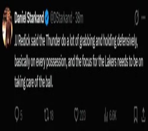 赛后雷迪克在采访时疯狂吐槽这场比赛裁判的双标,雷迪克说道:雷霆队在防守端频繁的出现拉扯、拉拽,几乎每一个回合都在产生。