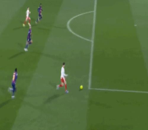 第17分钟,亚马尔长传,费尔明右路突破传中,拉菲尼亚后点接应,内切摆脱抽射一气呵成,又偏出立柱。