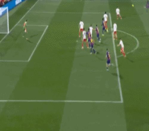 第94分钟,费尔明左路45°传中,莱万头球没有顶到,皮球直接钻入网窝,不过裁判示意莱万越位在先。