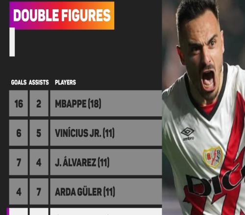 阿尔瓦罗加西亚是本赛季五大联赛首位制造进球上双的西班牙球员